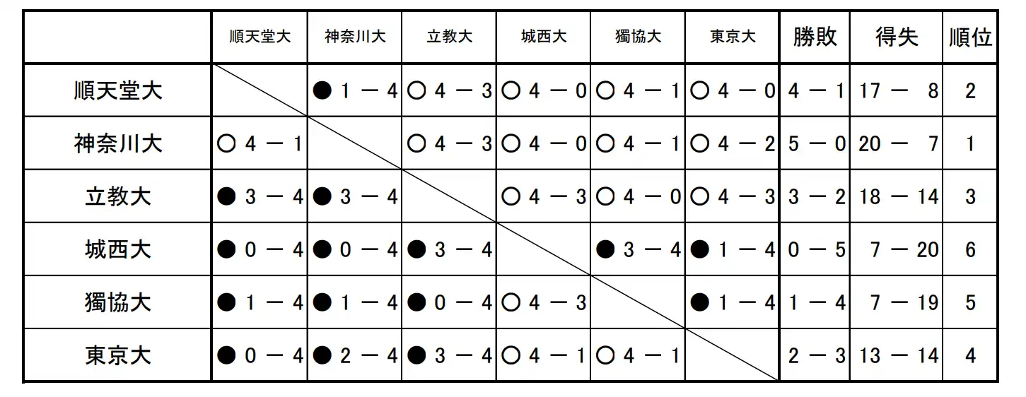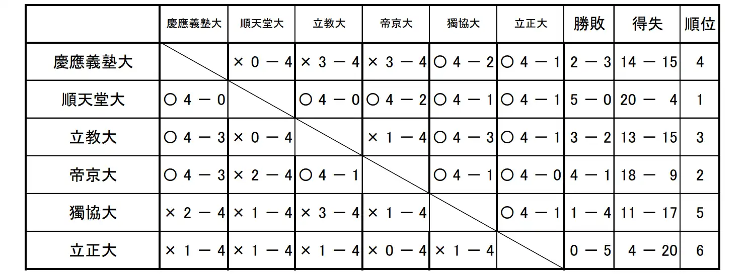 6月1日に中央大学多摩キャンパスにて3部優勝決定戦が行われ、立教大学は順天堂大学に1-4で敗退となりました。